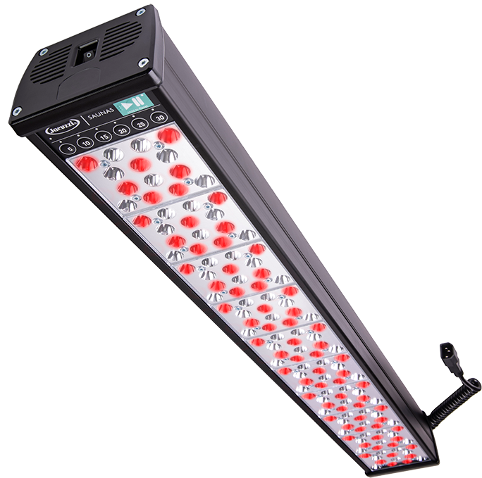 Our red light therapy tower can be used in conjunction with your infrared sauna, to obtain the benefits of both scientifically backed therapies in one session. When sitting on your sauna bench at approximately 30-45cm distance from your unit, we recommend a 20-30 minute session. In the beginning, it is important to maintain consistency in your light therapy treatments. Daily use is recommended, and as time goes on the time can be tapered to three or four times per week. For an area with specific concentrated pain, exposure can be as often as 2 to 3 timer per day. If you want to shorten the time you will need to be closer to the unit at a distance of approx. 10-15 cm. Due to the high intensity of the red light therapy tower this will only require approximately 10 minutes per side.